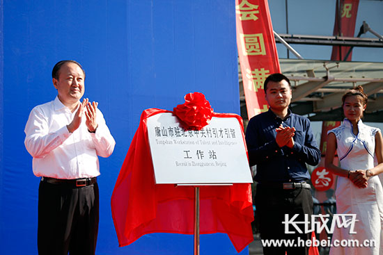 开幕式上,唐山市委常委、组织部长、统战部长陈学民为“河北坤宇物探科技有限公司院士工作站”授牌;唐山市副市长梁振江和中关村人才市场副主任刘禹为“唐山市驻中关村引才引智工作站”揭牌。