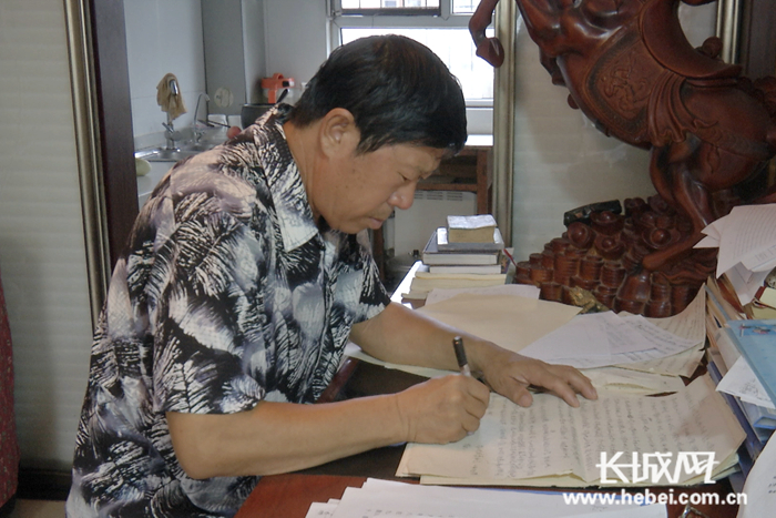 马树新在书桌前正在创作歌曲。记者 闫航 摄