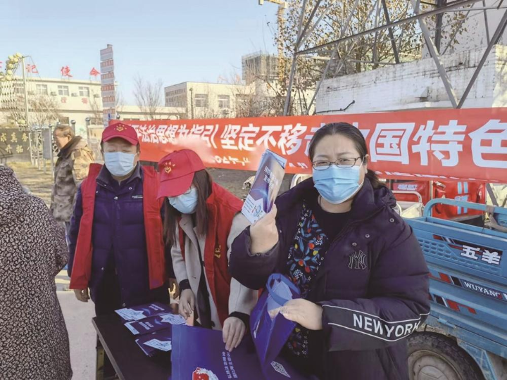镇综治办、司法所、妇联采用“主场活动+主题活动”方式进行宪法宣传,通过设立咨询台、悬挂条幅等方式,在镇政府门前悬挂法制宣传条幅,发放印有法律知识的宣传册、购物袋、纸杯等,向路过群众普及法律知识、切实提升村民法制观念,努力营造弘扬宪法精神、维护宪法权威的良好氛围。
