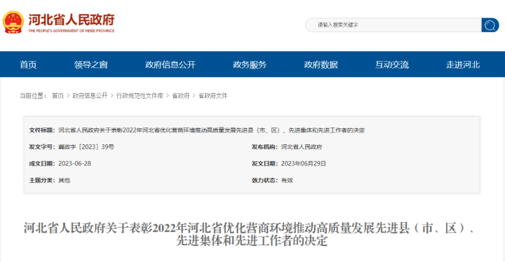 为表彰先进、树立典型,激励引导社会各界共同做好优化营商环境工作,营造有利于企业健康成长的发展环境,省政府决定授予迁安市等10个县(市、区)“河北省优化营商环境推动高质量发展先进县(市、区)”称号,授予石家庄市发展改革委等50个单位“河北省优化营商环境推动高质量发展先进集体”称号,授予胡建津等60人“河北省优化营商环境推动高质量发展先进工作者”称号。唐山上榜的有↓↓↓