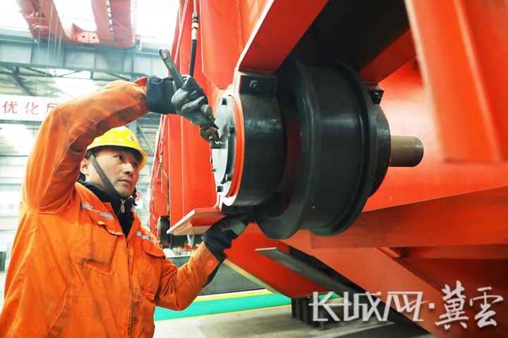 工人在丰润区一家起重设备制造企业的生产车间工作。