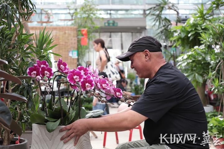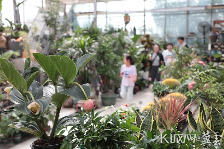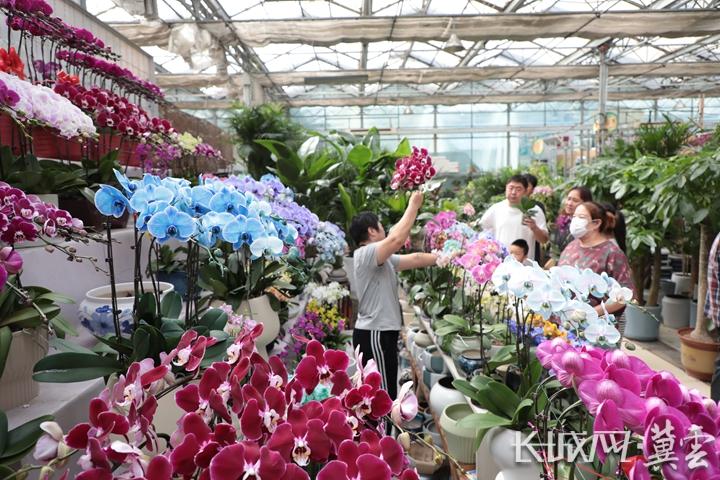 消费者在唐山凤凰花卉大世界观赏选购鲜花。