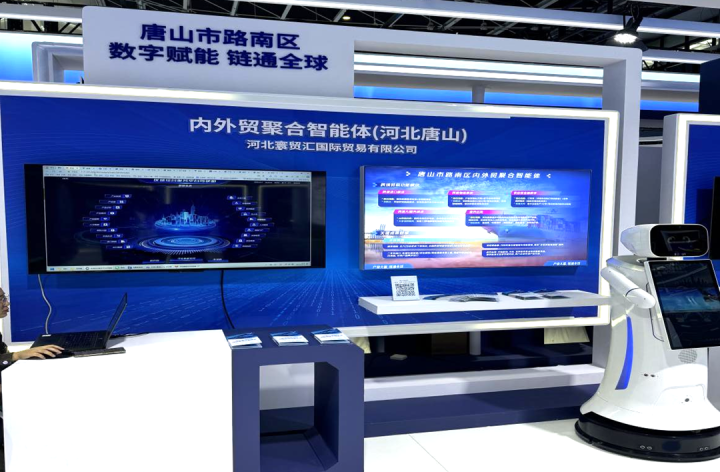 博览会现场,唐山市路南区参展企业亮点纷呈。其中,河北寰贸汇国际贸易有限公司凭借打造的“区域综合服务平台”获数字经济应用创新奖,并在展会期间成功吸引2家企业扫码入驻、与4家单位达成对接意向,成为路南展区亮点。