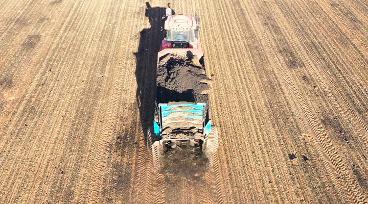 1月6日,在扣庄镇海沃之丰土地股份专业合作社的连片田地里,大型撒肥机轰鸣作响,腐熟后的粪肥被均匀抛洒在麦田及待耕土地上,细密的肥粒与土壤交融,勾勒出一幅生态备耕的生动图景。“我们严格按照每亩1000公斤的标准施撒,覆盖小麦田及来年计划种植玉米、花生的地块。”合作社理事长杨学奎介绍,全程机械化操作不仅保证了施肥均匀度,更将作业效率提升数倍,让冬肥施用既精准又高效。