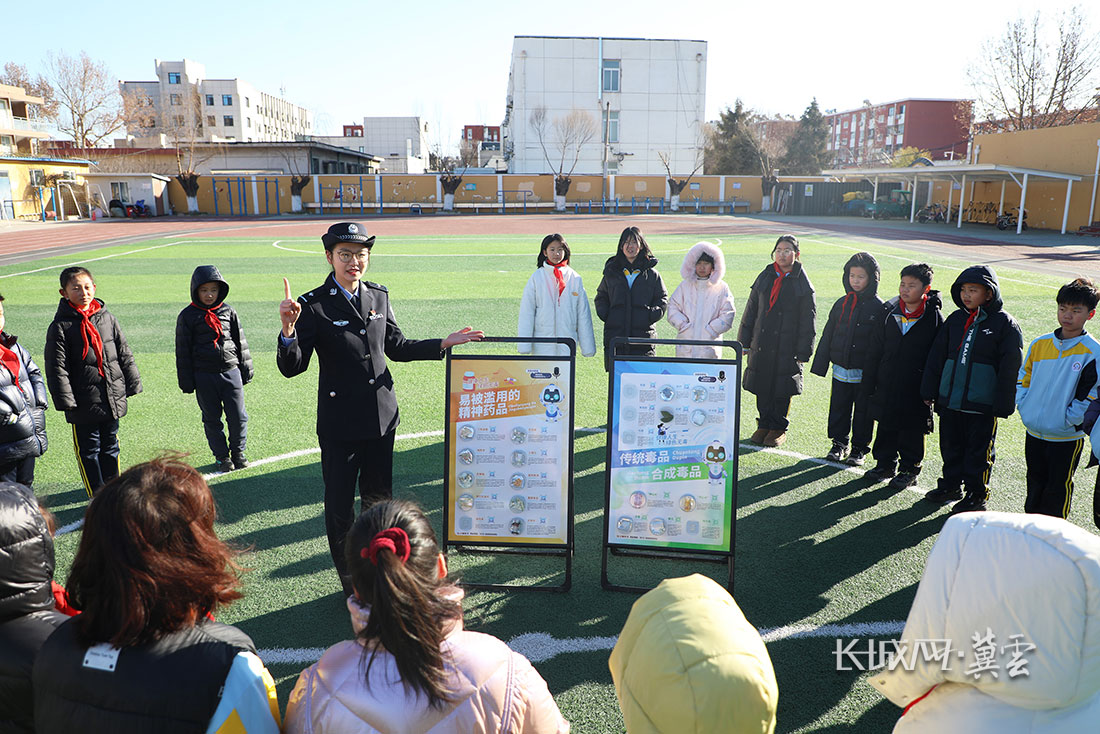 1月10日,丰润区公安局的警察在丰润区东实验小学为学生讲解禁毒知识。