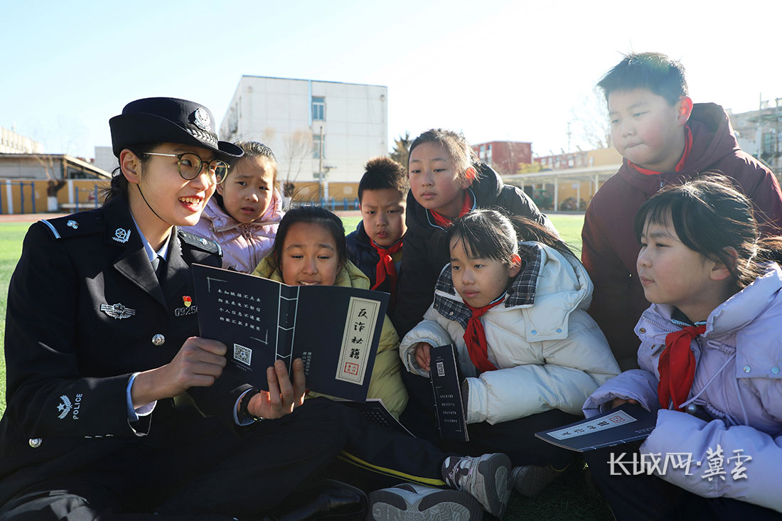 1月10日,丰润区公安局的警察在丰润区东实验小学为学生讲解反诈知识。