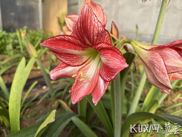 长城网·冀云客户端讯(记者 杨雨熹 通讯员 刘颖 孙敬聪)春节临近,河北省唐山市迁西县兴城镇海河村朱顶红种植大棚内暖意融融、生机盎然。一株株挺拔的花茎刺破寒意,碗口大的花苞次第舒展,艳红的花瓣饱满鲜亮,粉白渐变的花形雅致灵动,成为春节前夕最动人的冬日盛景,吸引不少游客前来观赏采购。