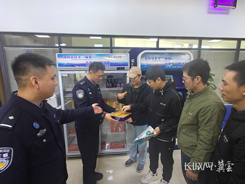 离开报检大厅前,船员们还收获了意外惊喜。“我为海员打开一扇窗”橱窗里,蜂蜜麻糖、花生酥糖、板栗果饮等唐山特产整齐摆放,民警张明笑热情招呼大家品尝:“带上一份河北的味道回家过年,把这份心意带给家人。”宣传手册上,唐山宴、河头老街、揽月湾等景点都配上了红灯笼、中国结的新春元素,看着就喜庆。船员刘朋超边看边和同伴约好:“等回去过了年,一定带老婆孩子来这转转。”