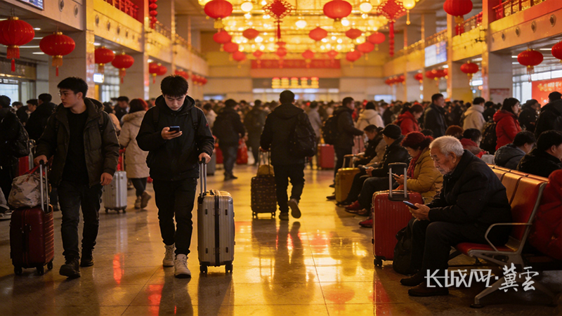 除夕前夜,人潮汹涌的火车站里,无数人攥着那张终点是“家”的车票。