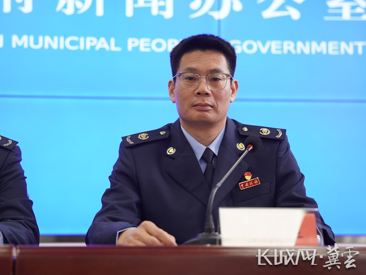 国家税务总局唐山市税务局党委委员、副局长、新闻发言人边进波。长城网·冀云客户端记者 侯嘉正 摄