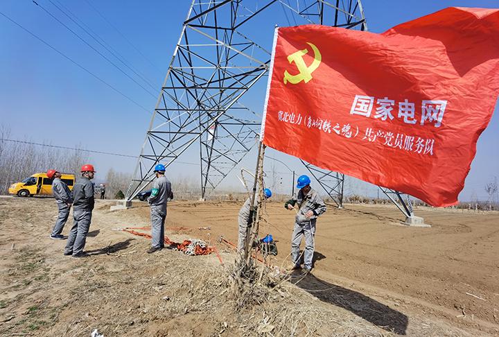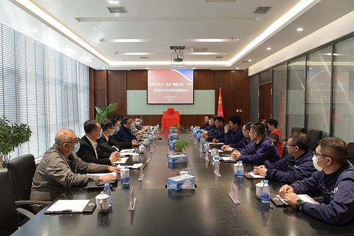 国网冀北电力(唐山“钢铁之魂”)输电共产党员服务分队社会联络站揭牌仪式现场。范江涛 摄