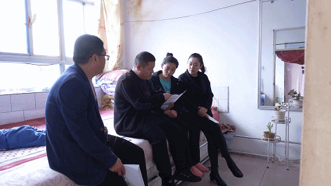 村综合服务站管理员到村民家中,确保百姓及时享受到惠民政策。