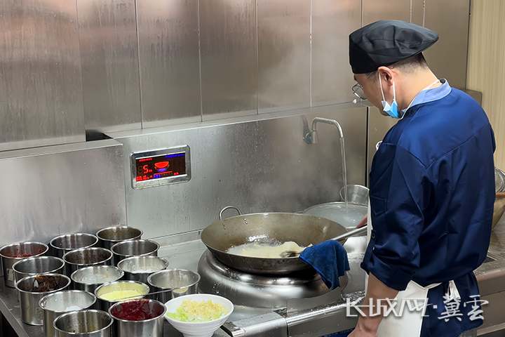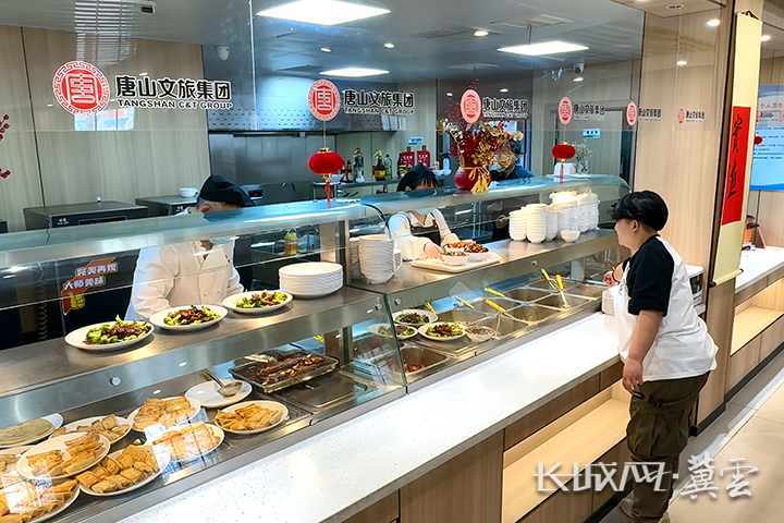 中午10:30,在唐山投资控股集团、唐山文旅集团打造的国防楼社区智慧生活综合体社区食堂里,厨师长熊惠田正一手掌勺,一手挥动着铲子,为中午的菜品忙碌着。