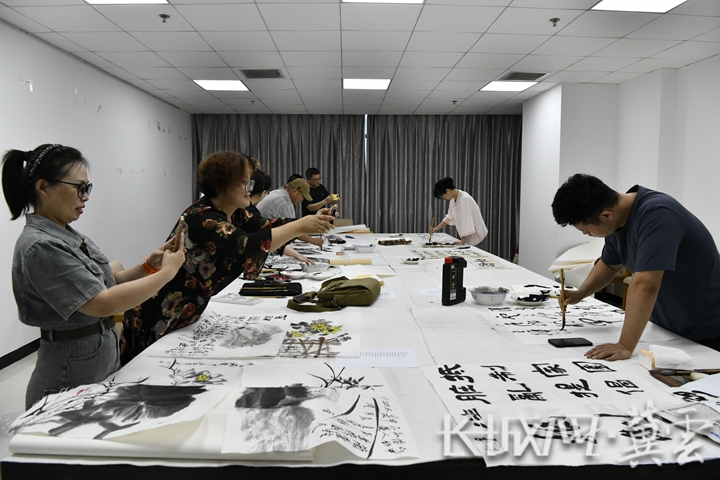 主题书画笔会现场,书画爱好者正在拍照记录创作过程。邹雅婕 摄
