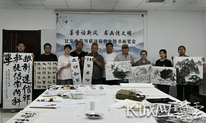 长城网·冀云客户端讯(记者 霍伟晗 通讯员 邹雅婕 李瑛 殷国静)翰墨飘香话新风,画彩流芳绘文明。7月16日,河北省迁安市举办“墨香话新风 书画传文明”主题书画笔会,通过书画艺术的形式,助力基层精神文明建设。