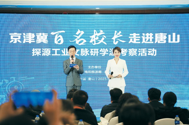 京津冀“百名校长”走进唐山探源工业文脉研学游考察活动现场。