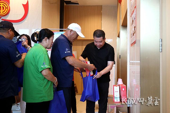 慰问现场,路北区区总工会为走进驿站的快递员、外卖员、公厕保洁员等户外劳动者送上了西瓜、雪糕、冷饮等防暑降温食品,以及洗衣液、沐浴露、洗手液、水杯、白糖等慰问品。
