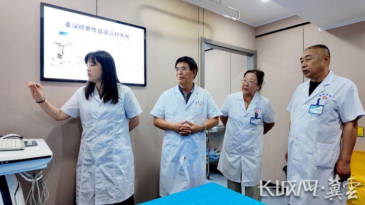 会前,专家一行实地了解了医院诊疗区域,对治疗室配置给予充分肯定。该区域现已配备了国内外一线先进诊疗设备,如以色列雷诺瓦 ED 治疗系统、万孛力硬度检测仪、LIPUS 超声波 ED 治疗系统、美国杜克泰格男性功能康复系统等,其中本次新增的雷达磁刺激系统更为河北省内首次引进,备受关注,专家们对其技术特点进行了细致讲解。据了解,雷达磁刺激诊疗系统具有诸多领先优势,它首次将雷达技术应用于盆底评估与治疗,采用非侵入式评估治疗方式,能高效解决男科问题。该系统的适用范围广泛,可通过盆底评估结果,精准给出包含被动磁刺激、助力磁刺激、触发磁刺激和生物反馈的治疗方案,实现多层次的肌肉训练,有效治疗相关疾病。