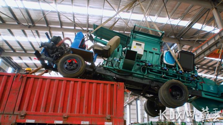 唐山鑫万达实业股份有限公司内打包好的定制农机。杜昭摄