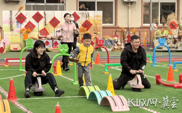 长城网·冀云客户端讯(记者 冯喆 通讯员 刘巧 冯艳红 霍英杰)“爸爸加油!再快一点儿!快到终点啦!”家长们背着孩子在跑道上“抢收大葱”,孩子们紧紧抓住“丰收的果实”将大葱放入“粮仓”……10月23日,河北省滦南县第一幼儿园内热闹非凡,一幕幕活泼有趣的场景接连上演,一场以“秋潮乐享丰收”为主题,融合农耕文化与亲子乐趣的运动会激情开跑,吸引了两百余组家庭齐聚一堂,沉浸式体验秋天的馈赠。