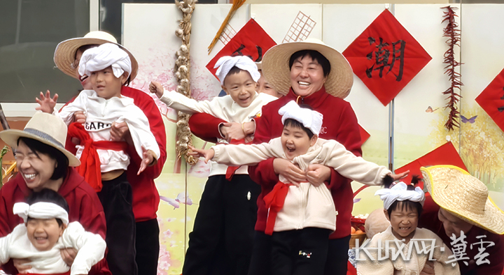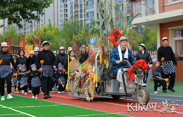 开幕式上,家长与孩子们翩翩起舞共庆丰收,在举手投足间感受丰收的喜悦;运动会上,家长和孩子们一起完成了“五谷丰‘蹬’”“薯我最棒”“向前‘葱’”“抢丰收”等丰富多彩的运动项目,每一个环节都巧妙融合了农耕智慧与亲子游戏乐趣。