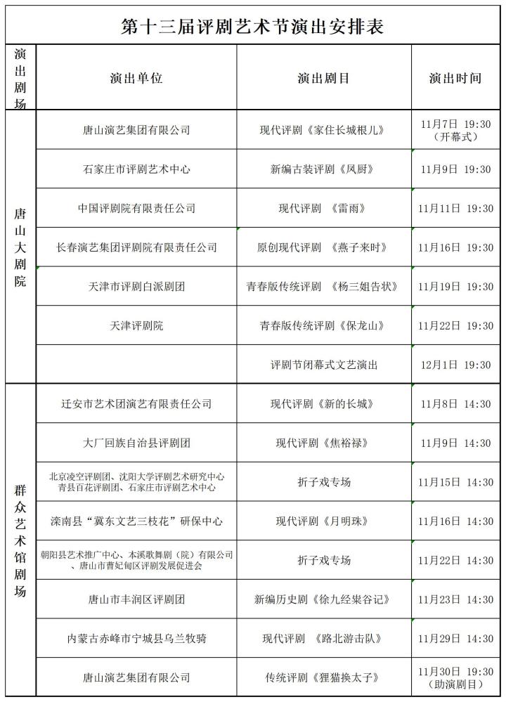 下面,请刘金柱先生介绍第十三届评剧艺术节演出安排。
