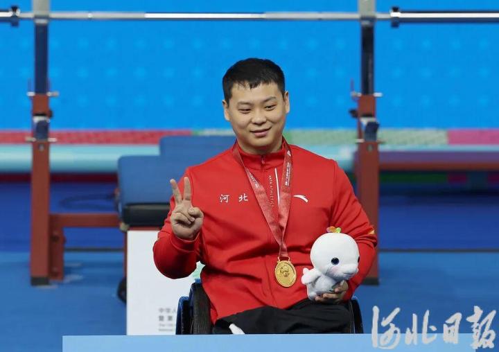 齐勇凯先天腿部残疾,14岁开始练习举重,曾在东京残奥会、巴黎残奥会、2021年残疾人举重世界杯、2023年残疾人举重世锦赛、杭州亚残运会等比赛中夺冠。如今,27岁的他第四次参加全国残运会,实现了在举重男子59公斤级项目上的三连冠。