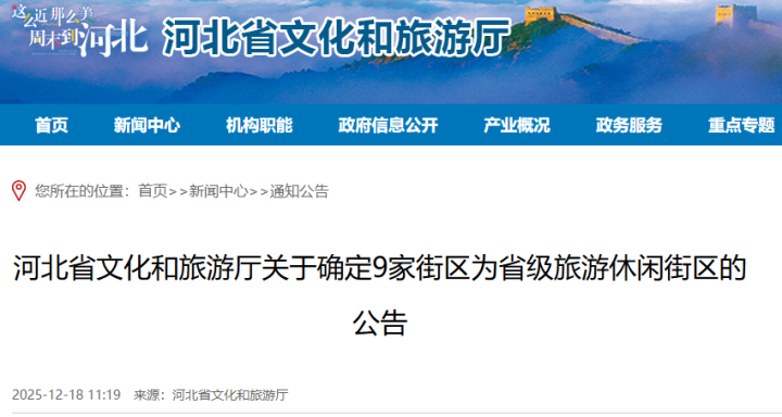 河北省文化和旅游厅关于确定9家街区为省级旅游休闲街区的公告