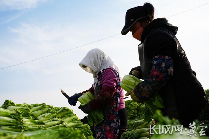 滦南坨上村农民正在打理白菜。刘佳男 摄