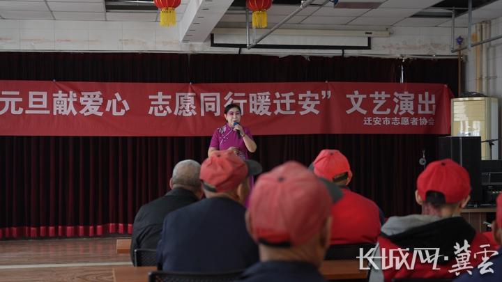 12月28日上午,唐山迁安市中心福利院内欢声笑语、暖意融融,迁安市志愿者协会组织文艺爱好者,在这里开展“喜迎元旦献爱心 志愿同行暖迁安”文艺演出活动,用悠扬的旋律、灵动的舞姿和真挚的祝福,为福利院的老人们送上了一份别样的节日问候。