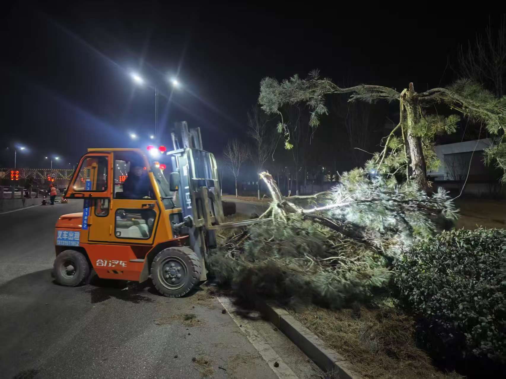 险情就是命令。接到相关险情报告后,唐山市丰润区交通运输局第一时间启动公路突发事件应急处置预案,迅速进入应急抢险状态。值班领导靠前指挥,连夜统筹调度道班专业养护人员、抢险车辆及工具,一支由5名骨干力量组成的应急抢险队伍迅速集结,驾乘1台叉车、1台农用车,冒着夜间低温,火速奔赴事故现场,全力开展抢险保通工作。
