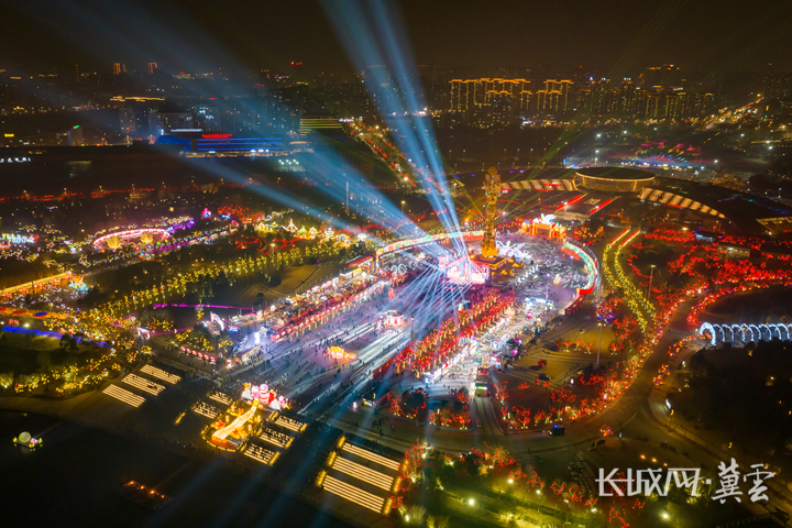 夜幕下的唐山南湖·开滦旅游景区,数不清的灯盏,望不尽的流光。