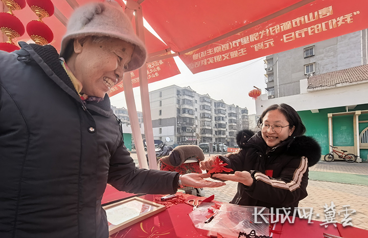 志愿者将剪纸送给社区居民。长城网·冀云客户端记者 冯喆 摄