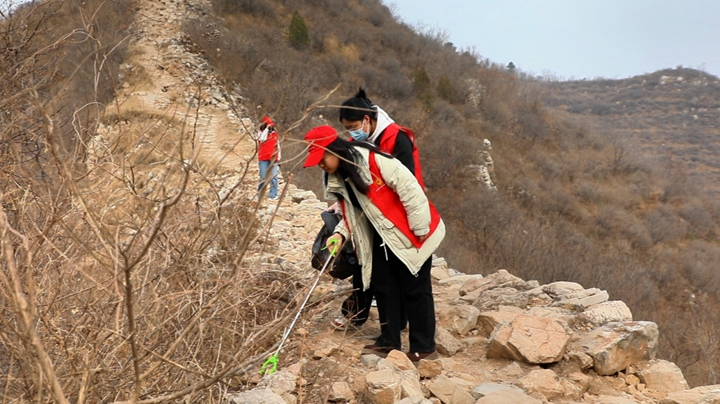 活动现场,身着红马甲的志愿者们分工明确、默契配合。大家手持垃圾袋、垃圾夹等工具,沿着蜿蜒的长城步道缓缓前行,仔细排查并捡拾游客遗留的塑料袋、饮料瓶、纸屑、烟头等各类垃圾,重点清理林草茂密区域的隐蔽垃圾和不易察觉的细小杂物,不放过任何一个卫生死角。志愿者们弯腰捡拾的身影,与古老的长城交相辉映,成为春日里一道温暖的风景线。