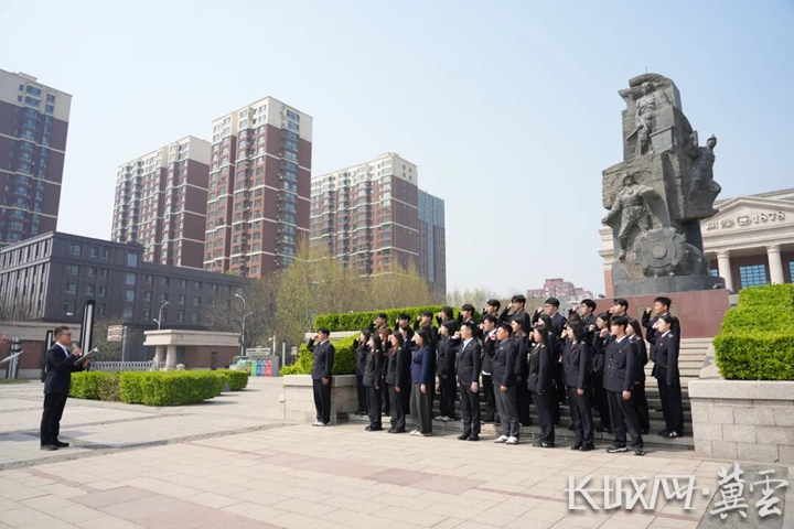 全体师生在“中国铁路源头”纪念碑前合影留念并庄严宣誓,“追寻开滦足迹,传承红色基因……德行四海,正道致远;技能报国,强国有我!”铿锵誓言在百年工业遗址上空久久回荡,彰显了唐山海运职业学院青年学子匠心报国的坚定信念与青春担当,定格下这场红色精神与工匠文化交织的青春洗礼。