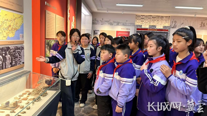 地北头鲁家峪九年一贯制学校的小讲解员在为学生参观团讲解。遵化市教育局供图
