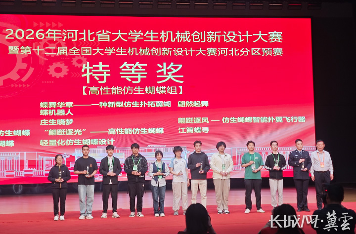 长城网·冀云客户端讯(记者 霍伟晗 通讯员 曹杰 刘乃江)近日,华北理工大学在2026年河北省大学生机械创新设计大赛中荣获特等奖1项、一等奖2项、二等奖4项、三等奖3项,其中特等奖作品“仿生蝴蝶”被推荐参加全国决赛。