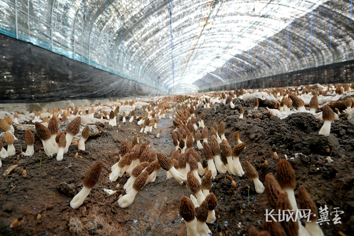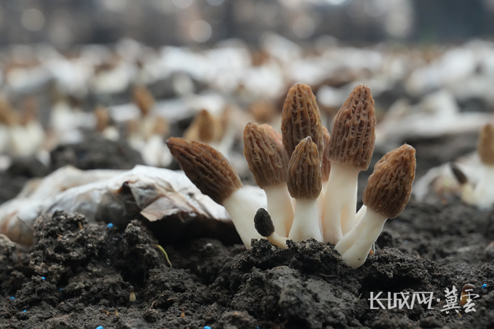 羊肚菌菌盖饱满、长势喜人。